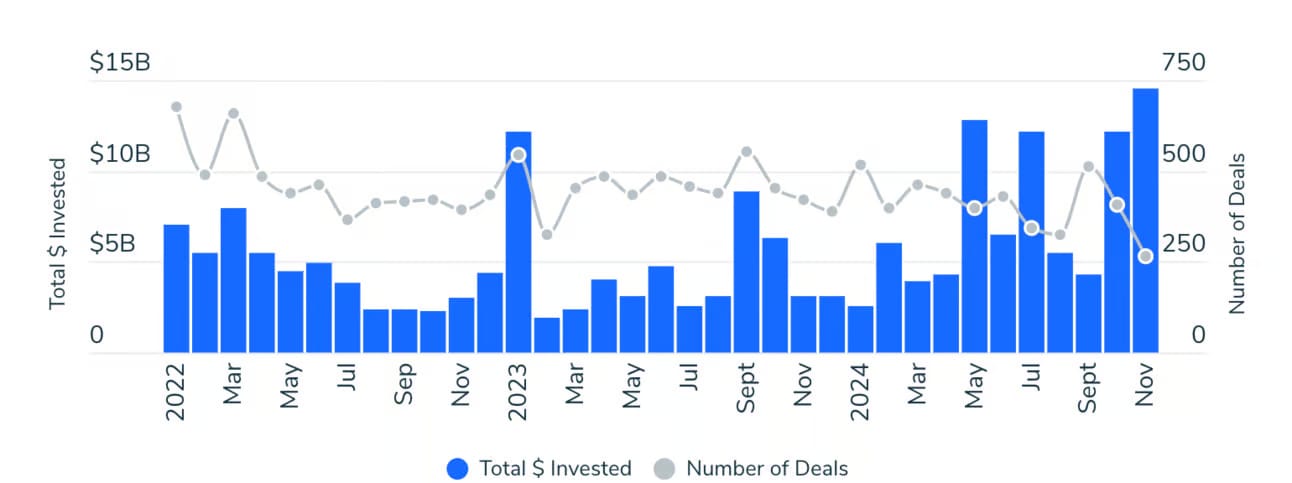 Grafic: Exista doar accelerari in finantarea startupurilor AI de pe glob.