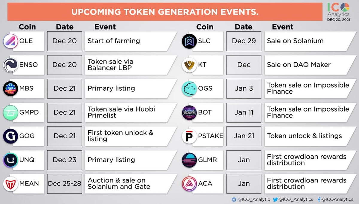 5. Un numar de viitoare listari si lansari de tokens, plus alte evenimente.