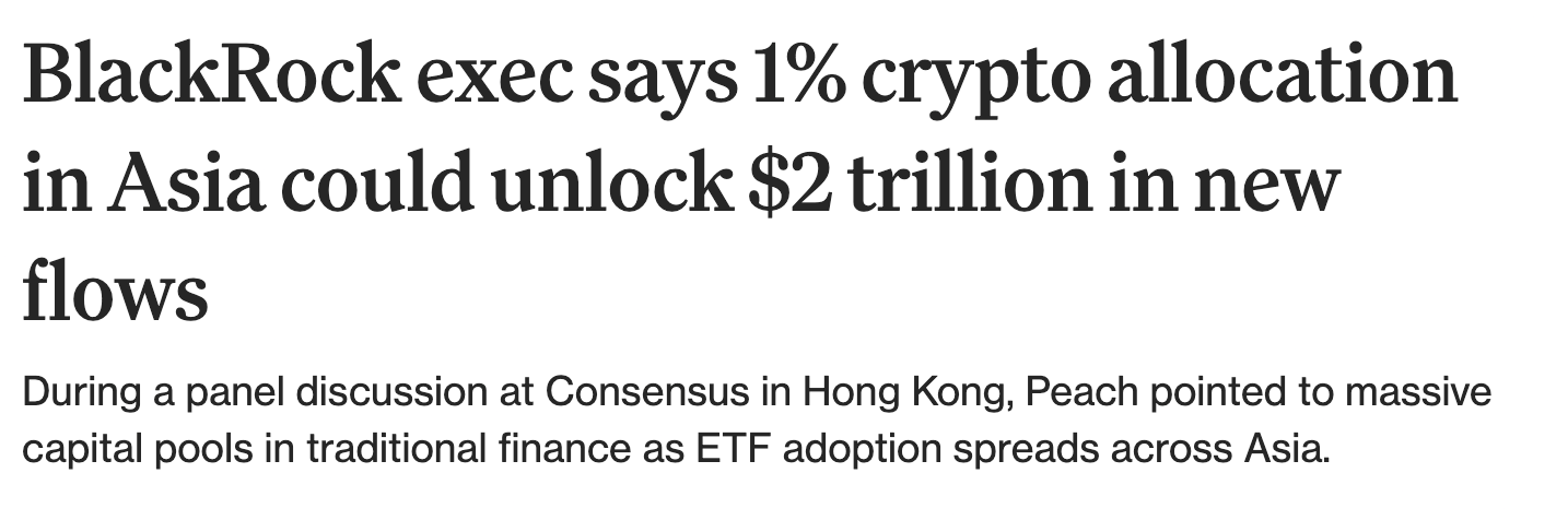De ce conteaza: Nu vorbim de retail, ci de reasezarea capitalului global. Daca Asia intra cu 1%, actualele preturi vor parea "mici copii". Nu uitati ca piata e acum undeva sub 2.5 trilioane. Putin hopium nu strica!